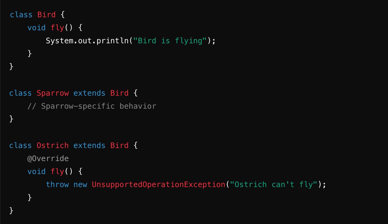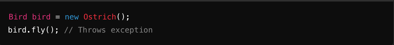 Now, substituting a Sparrow or Ostrich for Bird doesn’t violate the expectations set by the base class.