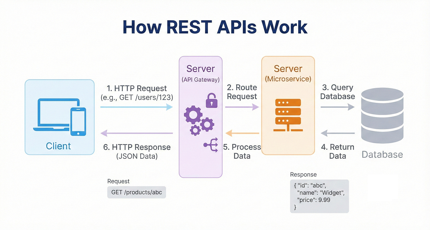 This simplicity makes REST easy to learn. It also works well across browsers, mobile apps, and backend systems.