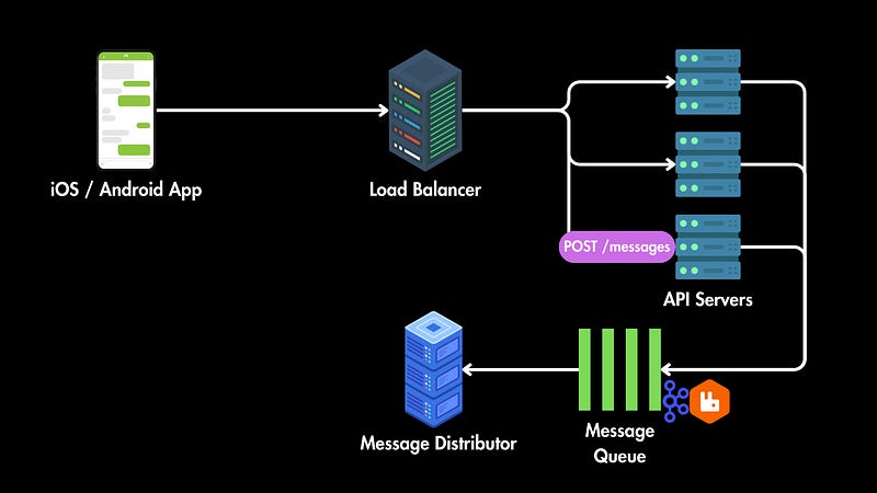 Message Distributor: Next, we will have a Message Distributor service, and the main purpose of this service is to decouple API servers from direct database writes, which is especially important for handling the high write volume.