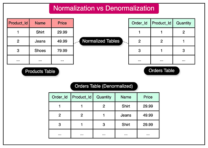 Here is a nice diagram from ByteByteGo which shows the difference between normalization and denormalization