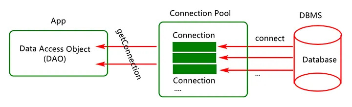 With connection pooling, you reuse existing connections instead of constantly opening new ones — reducing latency and server load.