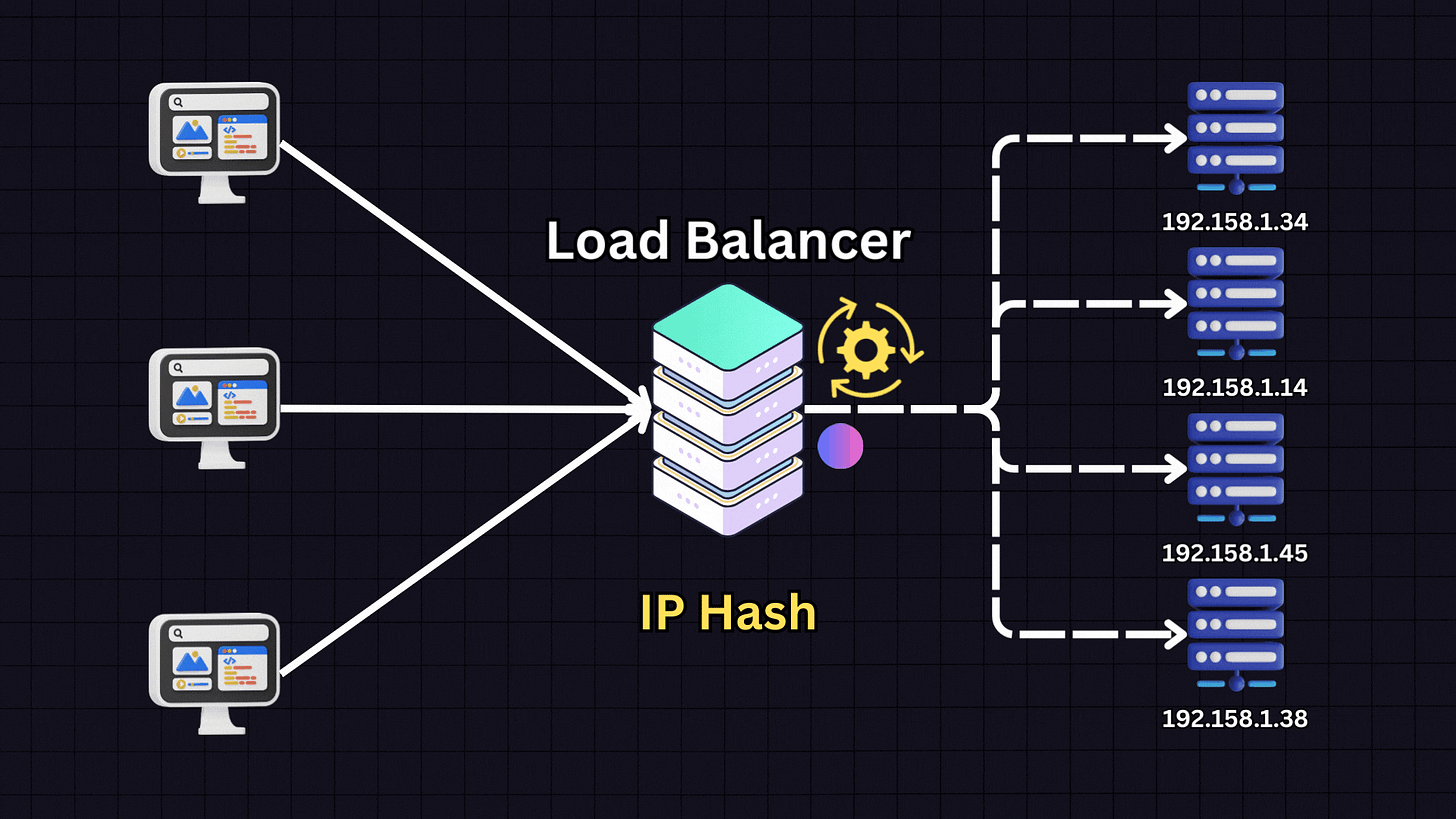 This ensures that a client consistently connects to the same server for all future requests. IP Hash is useful for applications where session persistence is important, such as when each server stores specific client information.