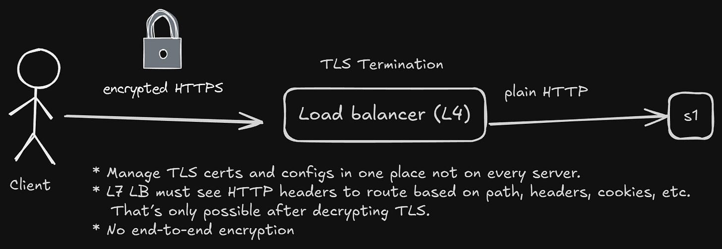 While looking into these, I stumbled across TLS termination. Let’s understand it in more detail.